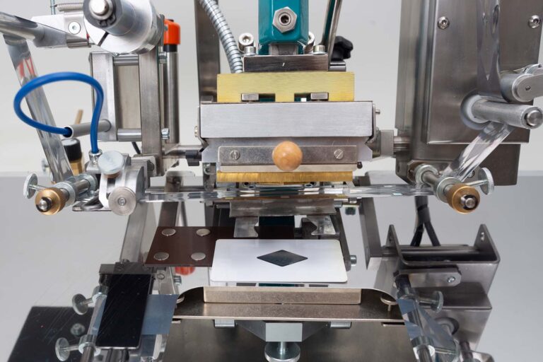Each machine is custom built and can be optimised to suit the application. A wide range of accessories for the tried and tested P01 embossing press is available for this purpose. Solutions that go beyond embossing, such as punching, heat sealing, riveting or plastic welding, have also already been implemented.